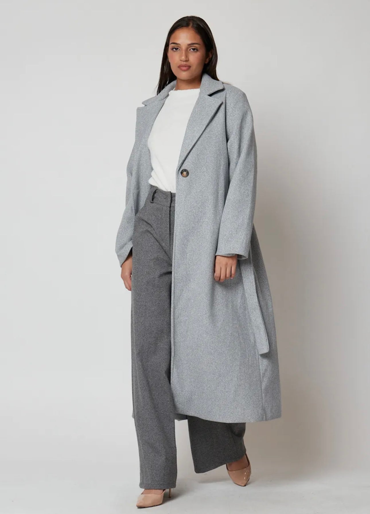 Abrigo largo con cierre de botones funcionales y cinturón ajustable integrado. Su corte elegante y alargado proporciona una silueta estilizada, mientras que el cinturón permite personalizar el ajuste según tus preferencias.