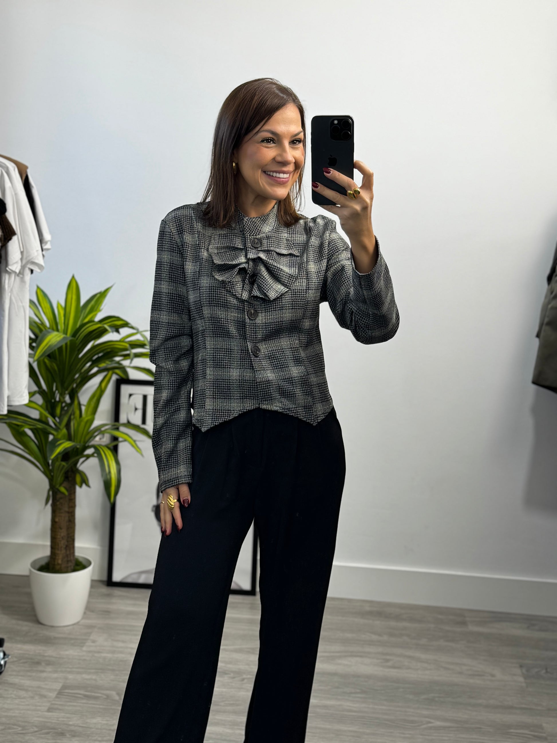Blusa de cuadros elegante talla única.