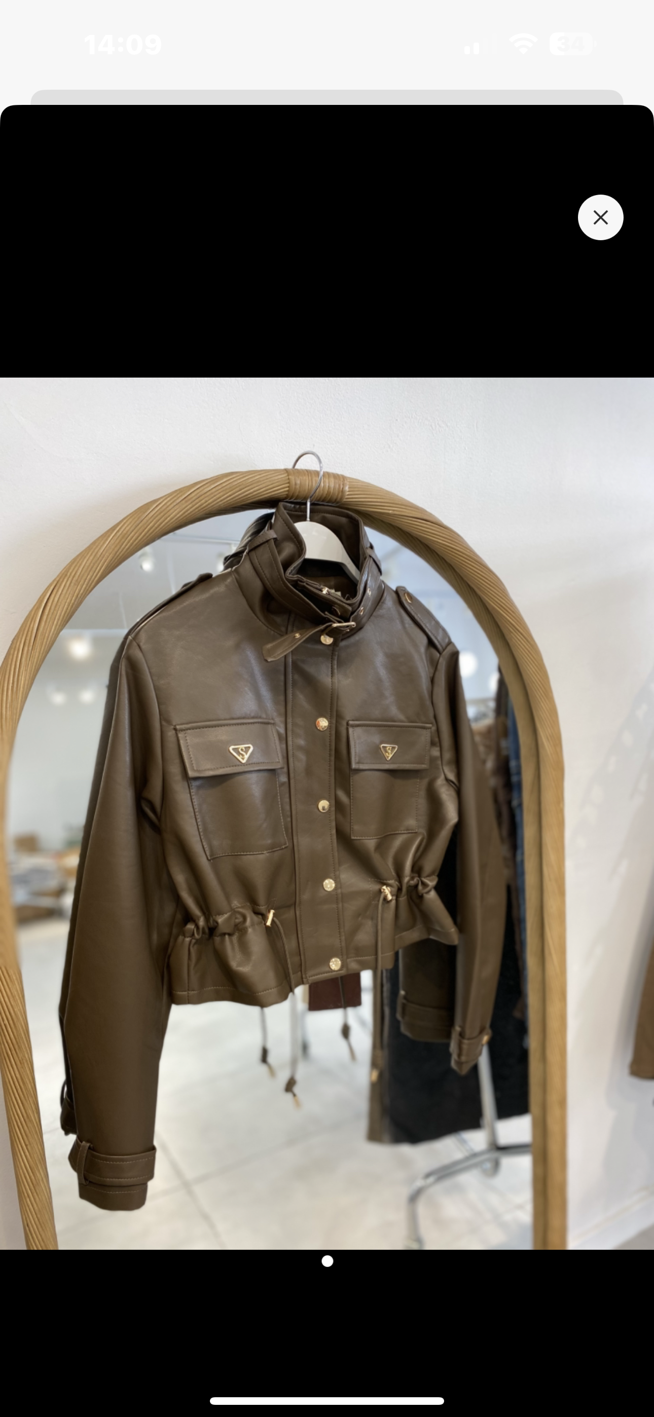 Chaqueta Corta de polipiel Negra con Detalles Dorados
