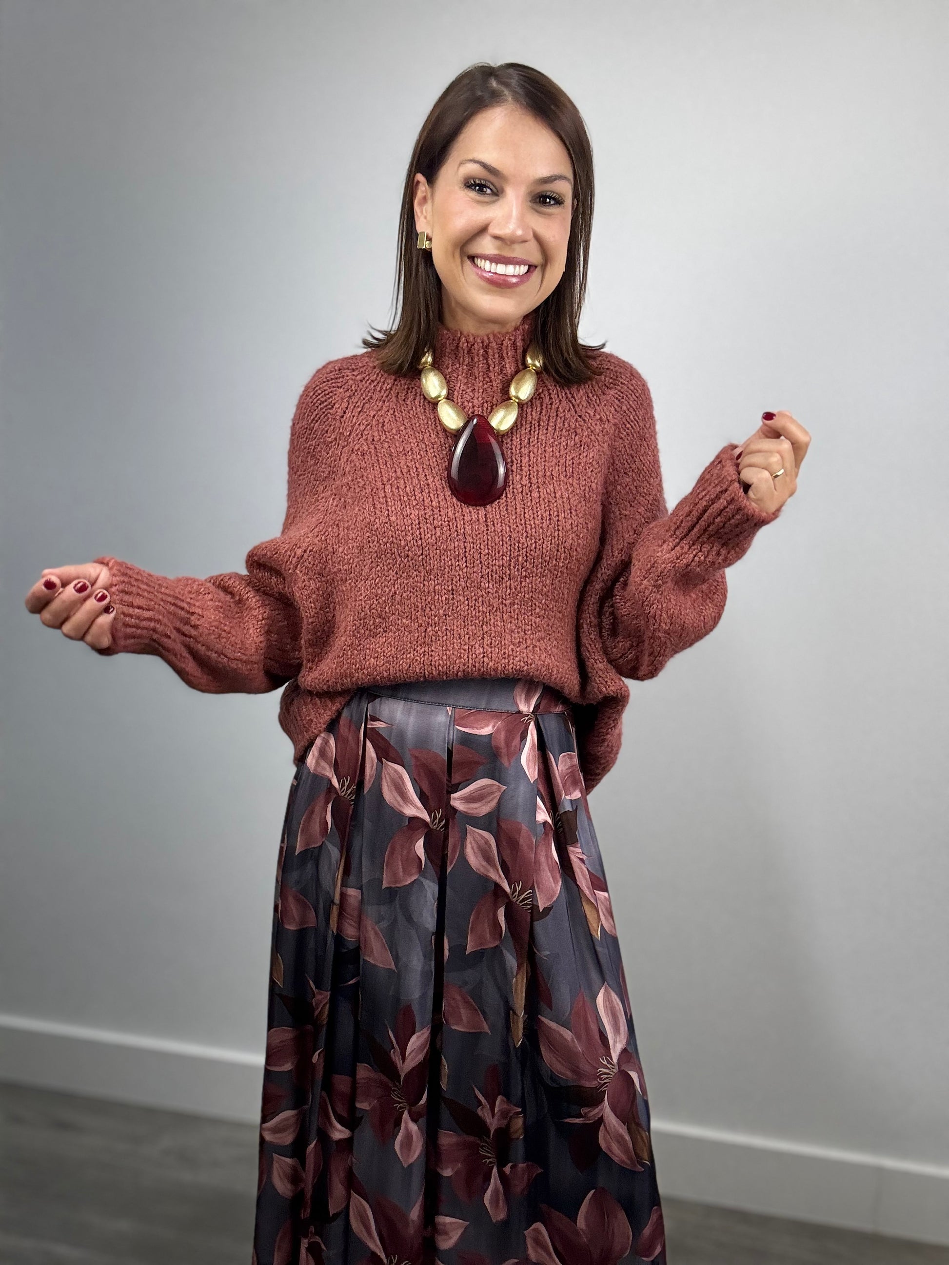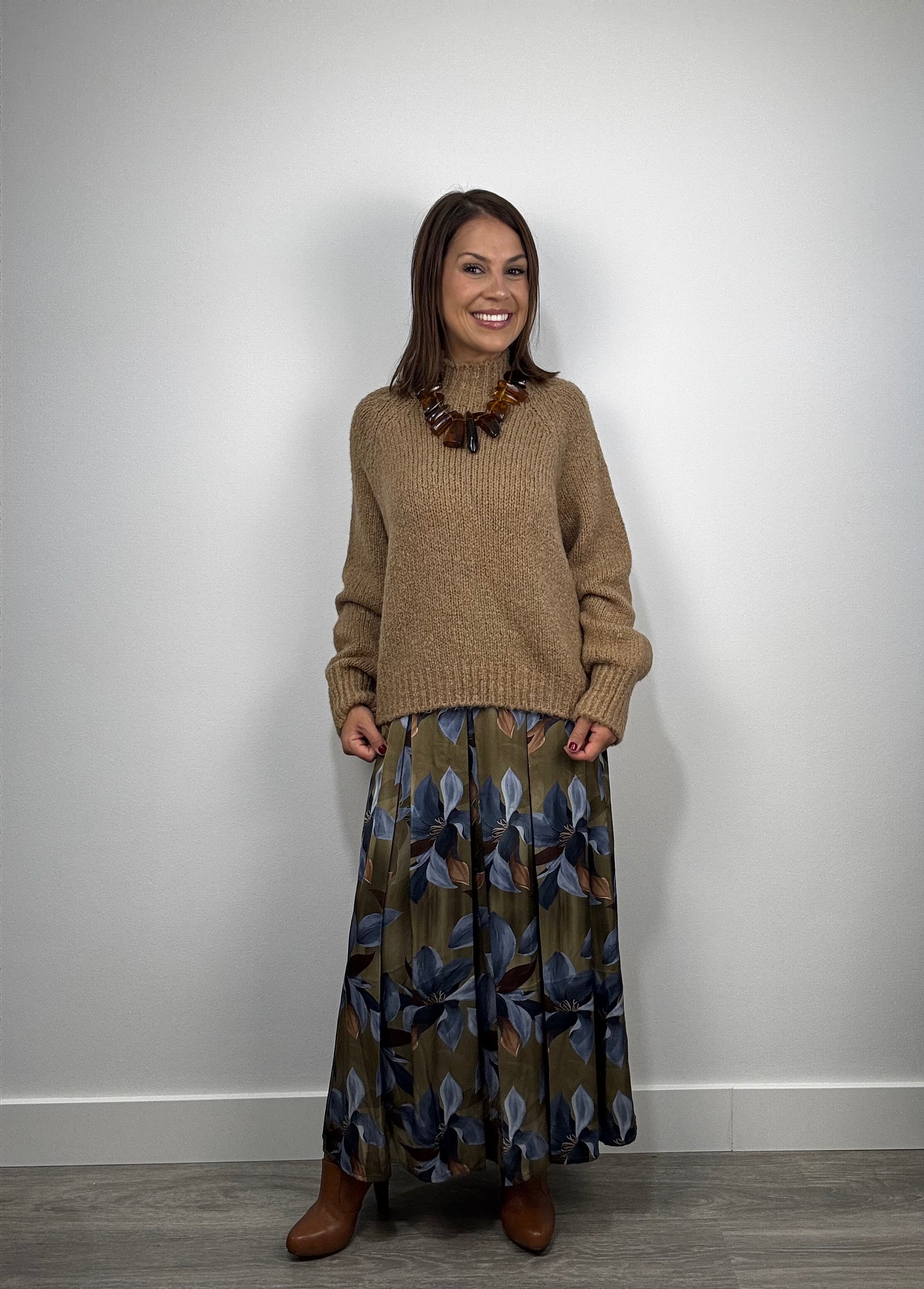 Esta falda midi de flores combina elegancia y funcionalidad con un diseño de pliegues suaves en el frente que aportan movimiento sutil y estilo refinado. La cintura con goma elástica trasera garantiza un ajuste cómodo y adaptable, ideal para tallas de la 36 a la 42. Además, incluye un práctico bolsillo delantero que añade un toque versátil. Perfecta para crear looks casuales o de oficina con un aire fresco y distinguido.
